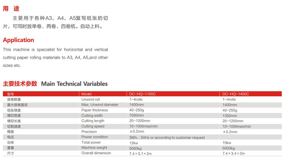 DC-HO-1100/14000伺服控制高速A4紙橫切機
